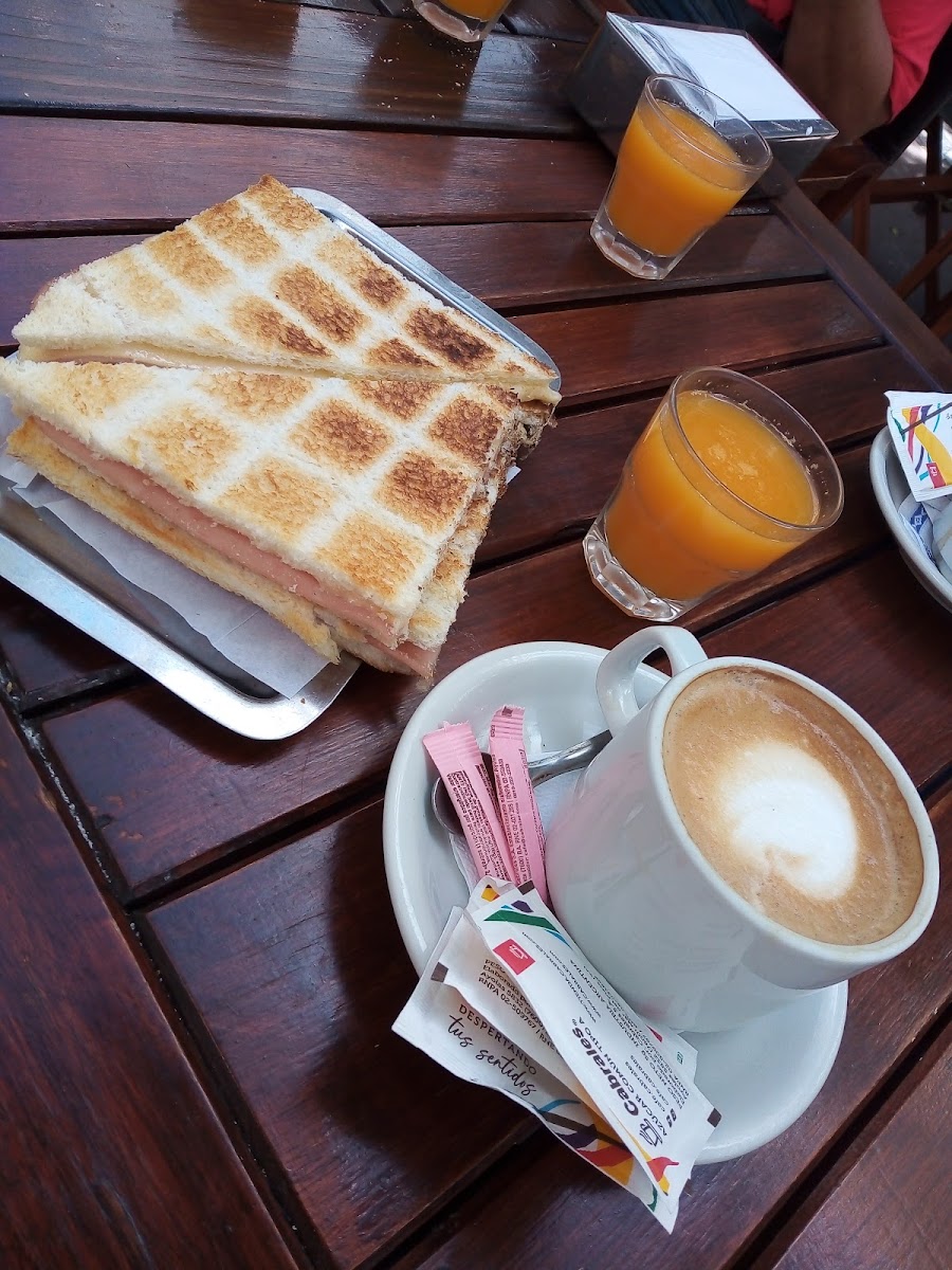El hotel La Cibeles tiene convenio con este bar para servir el desayuno, otro gran acierto del hotel ya que el bar es estupendo. Bien ubicado, buenos precios, muy limpio, rico el café, las medialunas y un enorme parrafo aparte para Lucho y Sebastian (Juanfer) los Santiagueños q lo atienden. Un placer haber conocido gente tan cálida q atiende un bar tan lindo. Seguramente cuando vuelva a miramar los volveremos a visitar. Detalle no menor, pasan futbol codificado.